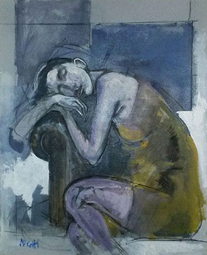 L'opera realizzata da Alberto Sughi: Donna che dorme nella poltrona, 2010. Acrilico su tela, 100x80cm