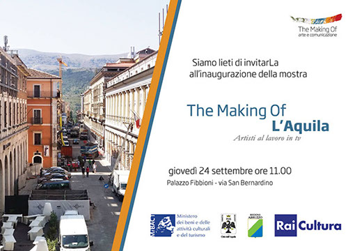 La locandina con l'invito alla mostra The Making of L'Aquila