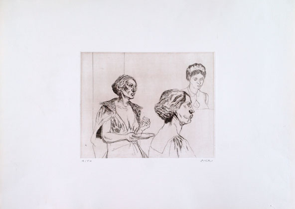 La cena / tre figure femminili, 1976, Acquaforte