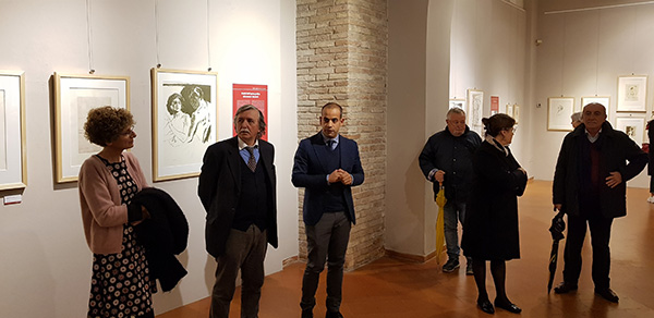 Sandro Parmiggiani e Christian Castorri, Assessore alla Cultura, aprono la mostra di Alberto Sughi al Ridotto di Cesena, 24 Nov. 2018
