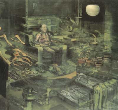 Franco Solmi , Sughi L'immagine di un uomo smarrito tra gli oggetti