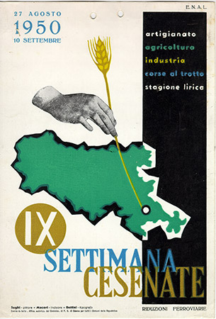 Poster | Locandina disegnata da Alberto Sughi per la IX edizione della Settimana Cesenate, 27 Agosto - 10 Settembre 1950 (E.N.A.L. Cesena)
