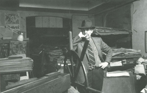 A sinistra, Alberto Sughi in stamperia. Foto Claudio Abbate Milano 1989