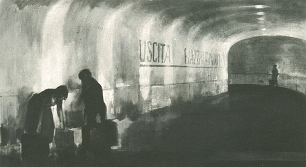 Alberto Sughi, Sottopassaggio, 1957 Olio su tela, 100x130cm