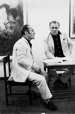 Federico Fellini davanti al dipinto Le Amiche ad una mostra di Alberto Sughi